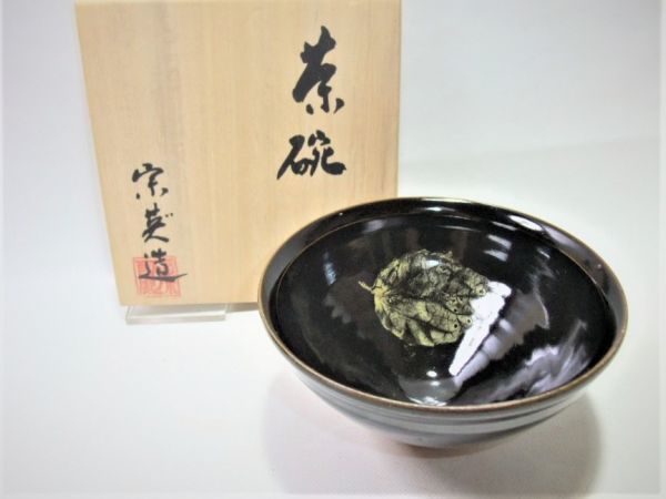 - 【睦】天目茶碗「宋英」作 木葉茶碗 茶道具 抹茶茶碗 美品 逸品 未使用 共箱■