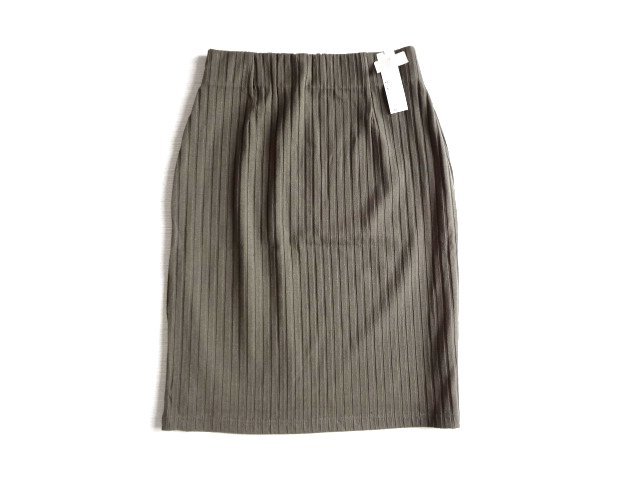 - 新品 定価5900円 M.deux エムドゥ タイト 膝丈 スカート カーキ テレコ 無地 緑 M