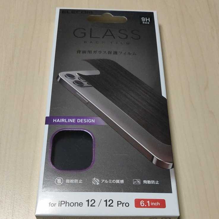 > ◎ELECOM iPhone 12 /12 Pro 背面 ガラス フィルム アルミ調 ヘアラインデザイン ブラック PM-A20BALPBK