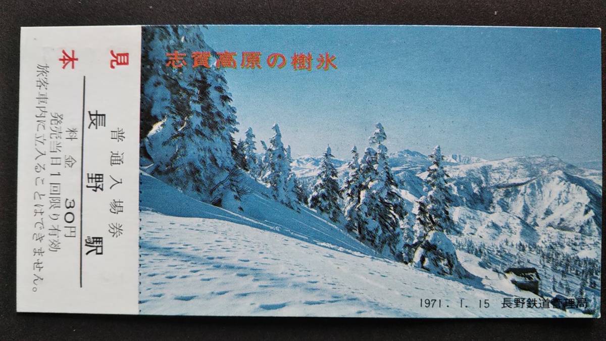 - 0129-26【国鉄記念きっぷ】志賀高原の樹氷 記念入場券 見本券 長野駅 昭和46年