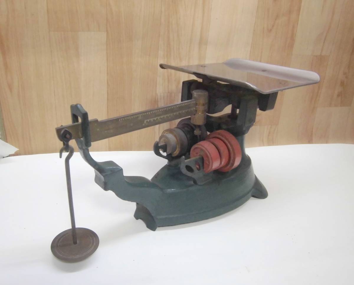 - 昭和レトロ アンティーク 上皿天秤はかり 重り8個 状態良好
