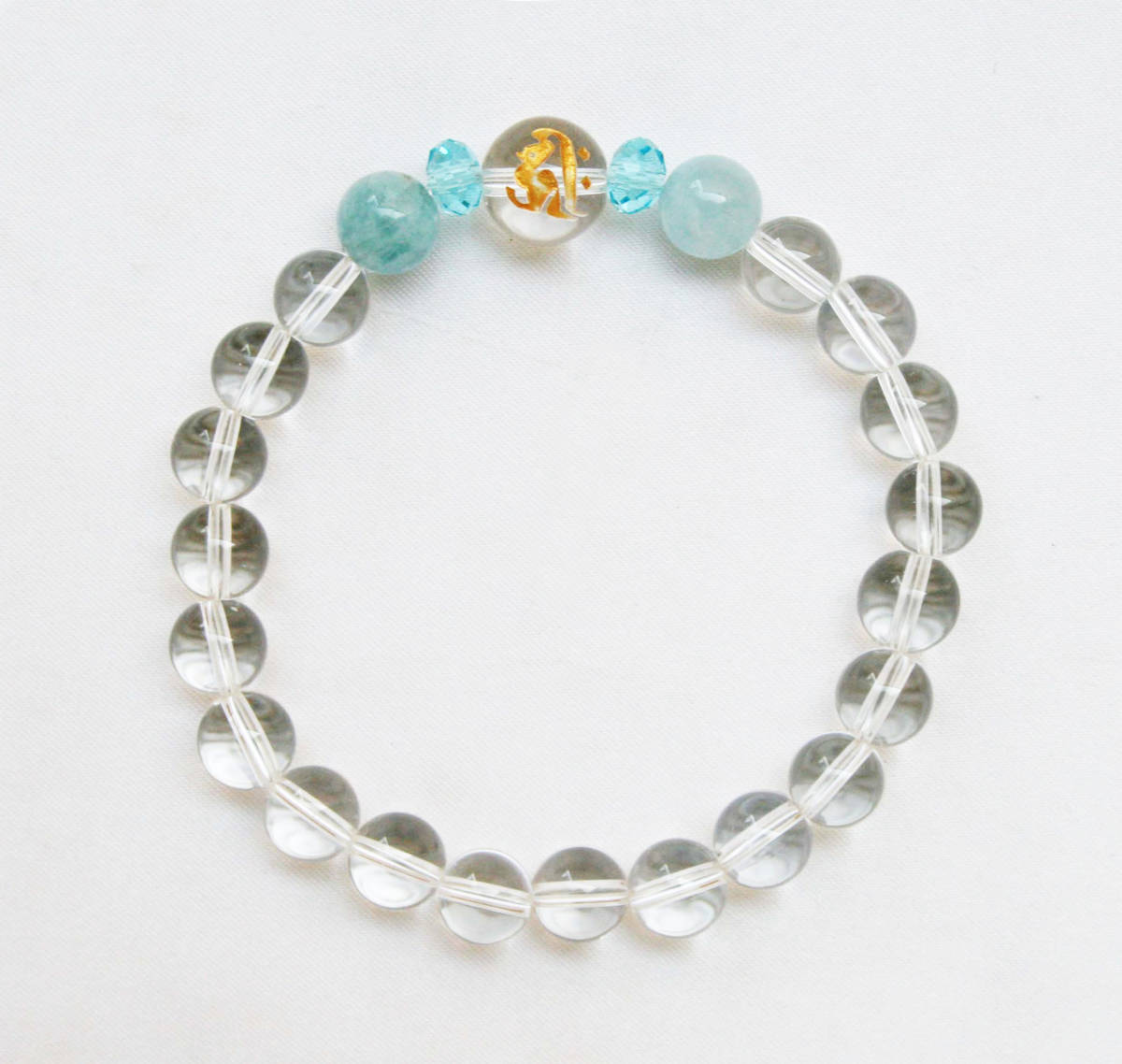 - ミルキーアクアマリン・水晶 「守りご本尊」ブレスレット【戌・亥年】】19.5cm