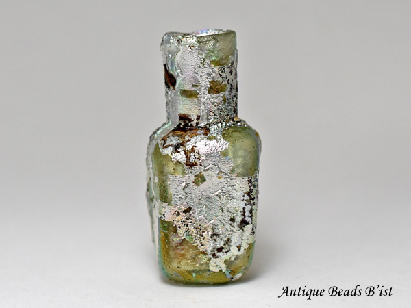 > ●わくわく とんぼ玉★古代ローマングラス激しい銀化四角小瓶 ボトル(高さ約4,5Cm)【送料無料】【2202】【AB19049】