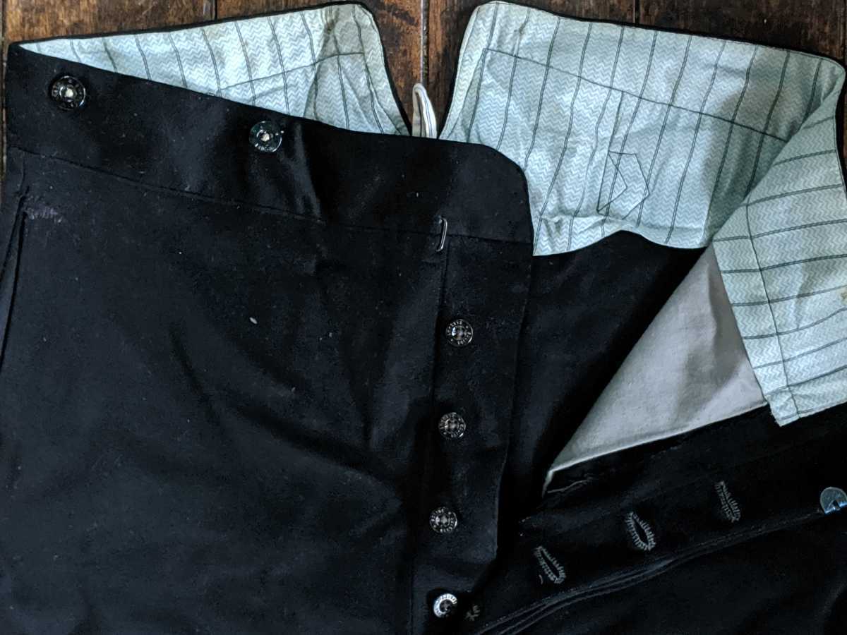 - 19世紀 ★ フランス ウール ドレス パンツ トラウザー 黒 セレモニー パレード モーニング 正装 ビンテージ メタル ボタン シンチ バック