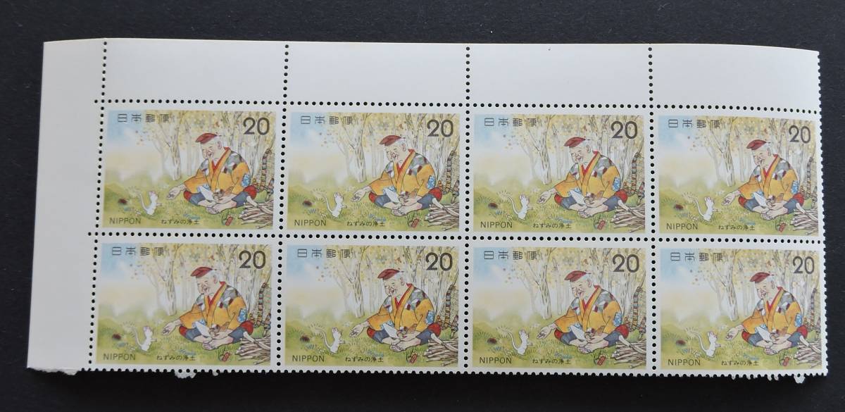 - 日本切手ー未使用 1975年昔話シリーズ第6集玉手箱20円 8枚ブロック NH 耳付き
