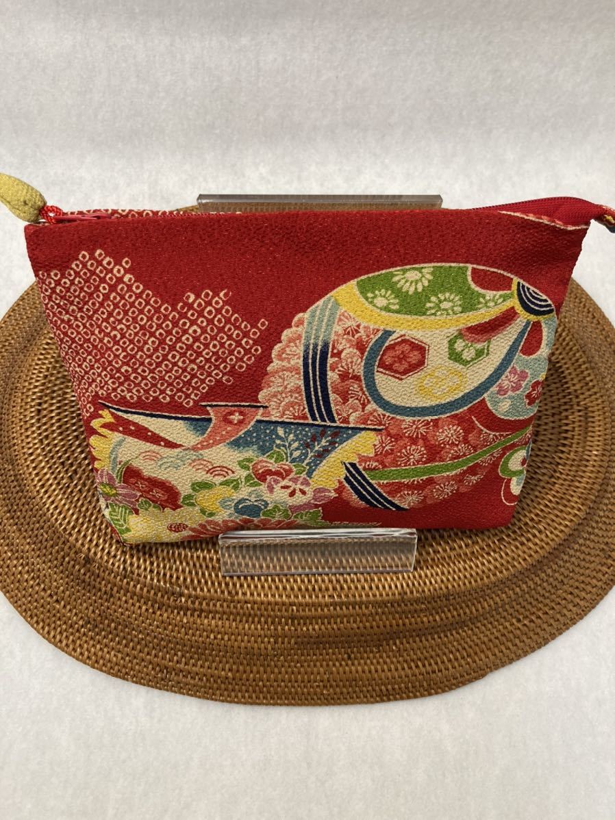 - 送料無料♪ギフトにも! 古典柄*ちりめんファスナーポーチ* 赤(内桜柄)☆御朱印帳 小入ります☆ CHACAPEE オリジナル