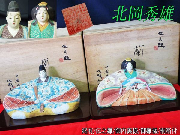 - 未使用 最上級 日展作家 北岡秀雄 陶器 雛人形 伝之雛 蘭 台座 銘有 雛祭 雛飾 おひなさま お内裏様 男雛女雛 お殿様 姫様 桃の節句 桐箱