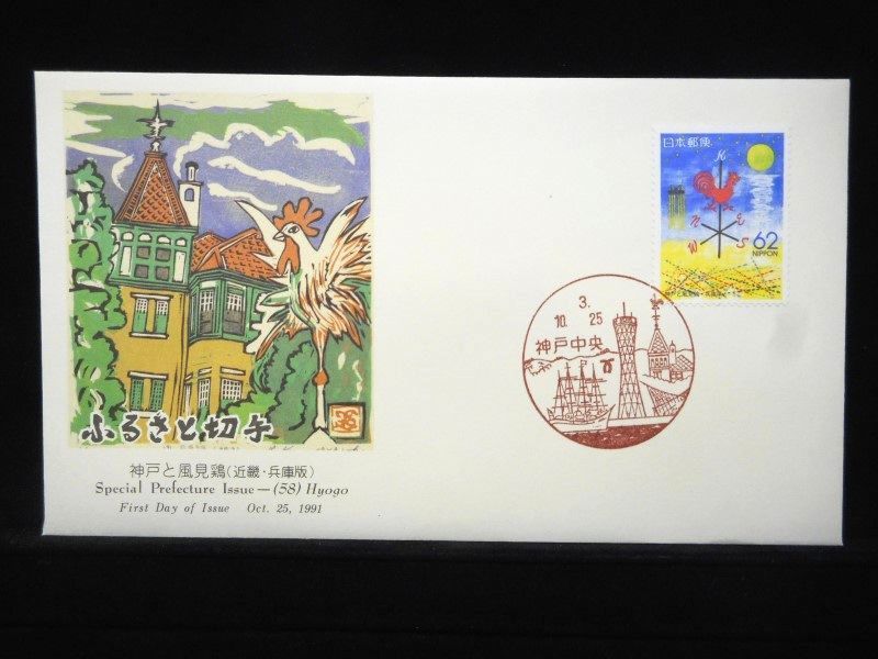 - ふるさと切手 神戸と風見鶏 1991年10月25日 神戸中央 初日カバー FDC 日本切手 M-321
