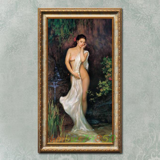 - ☆未使用◆美術品☆ 官能美女 人物画 美人画 油彩 絵画 寝室 装飾品 額縁付き 40cm*70cm