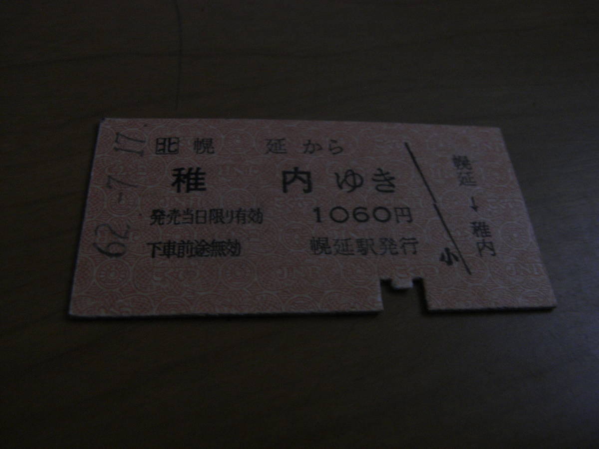 - 宗谷本線 幌延から稚内ゆき 1060円 昭和62年7月17日 幌延駅発行