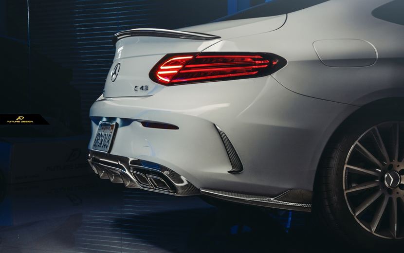 > 【FUTURE DESIGN】BENZ メルセデス・ベンツ Cクラス C205 クーペ AMGバンパー用 カナード リア スプリッター 本物DryCarbon ドライカーボン