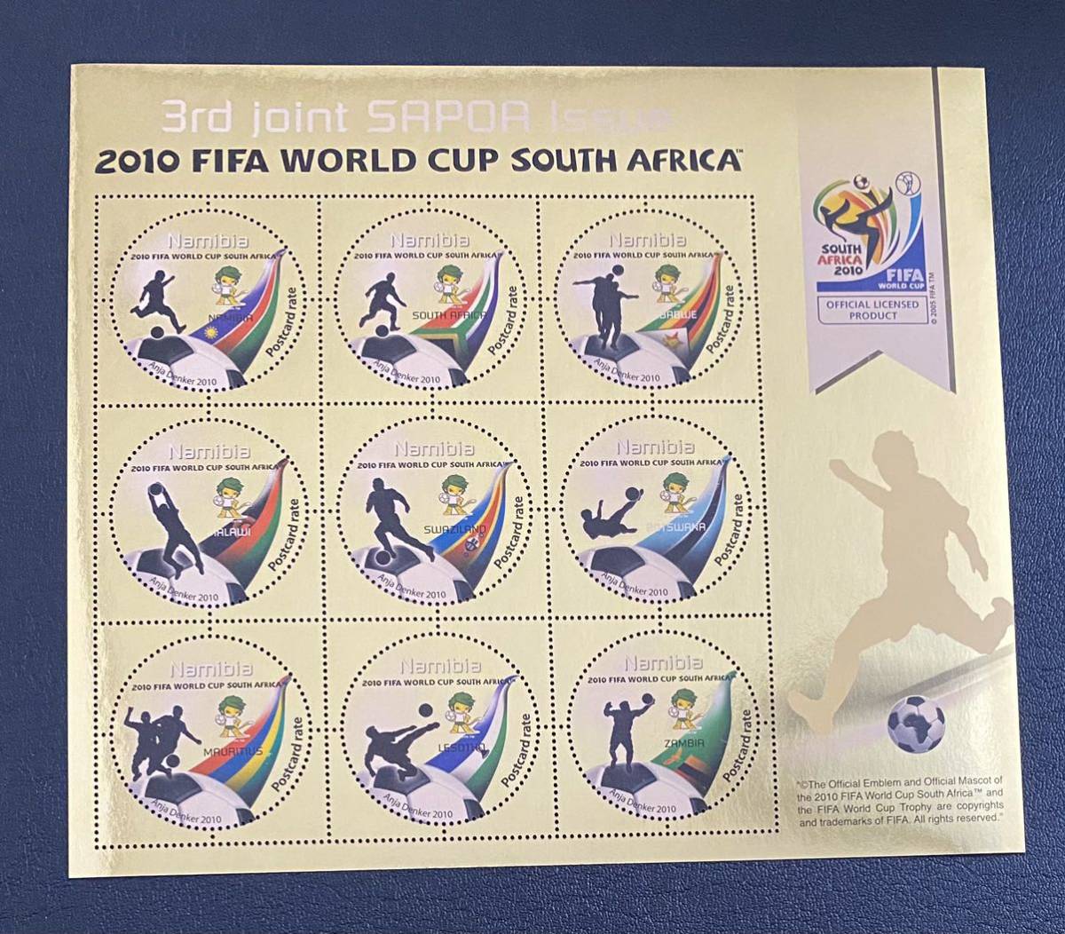 - ナミビア ワールドカップ 南アフリカ大会 SAPOA 金色印刷 円形切手 変わり種 小型シート1種完 未使用 NH