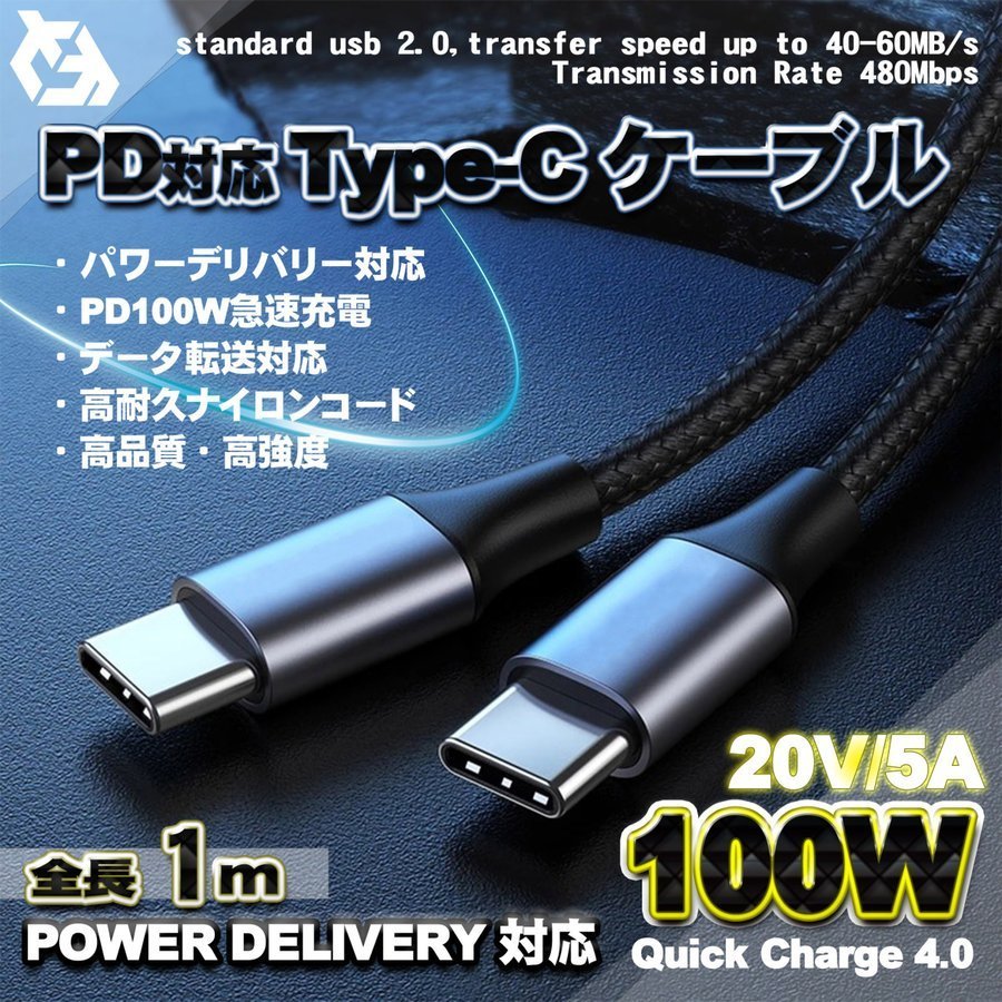 - 【PD対応】 Type-C to Type-C ケーブル 急速充電 高速 充電 100W 断線防止 パワーデリバリー Android アンドロイド 1m