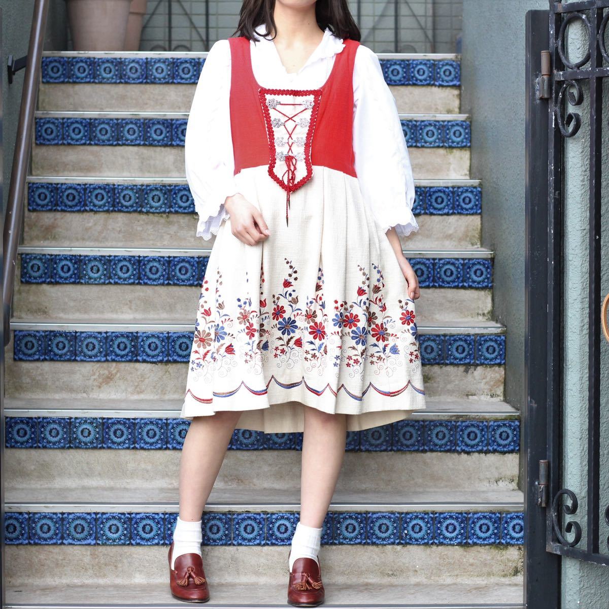 - *SPECIAL ITEM* EU VINTAGEヨーロッパ古着リネン刺繍デザインノースリーブチロリアンワンピース