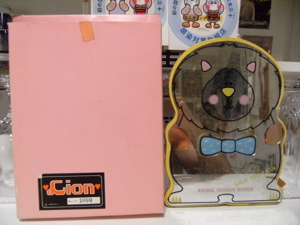 > 昭和レトロ★日本製 80年代★当時物★箱付き ANIMAL FASHION MIRROR アニマル ファッション ミラー 鏡 小物 美容 化粧 ヘアケア★ライオン