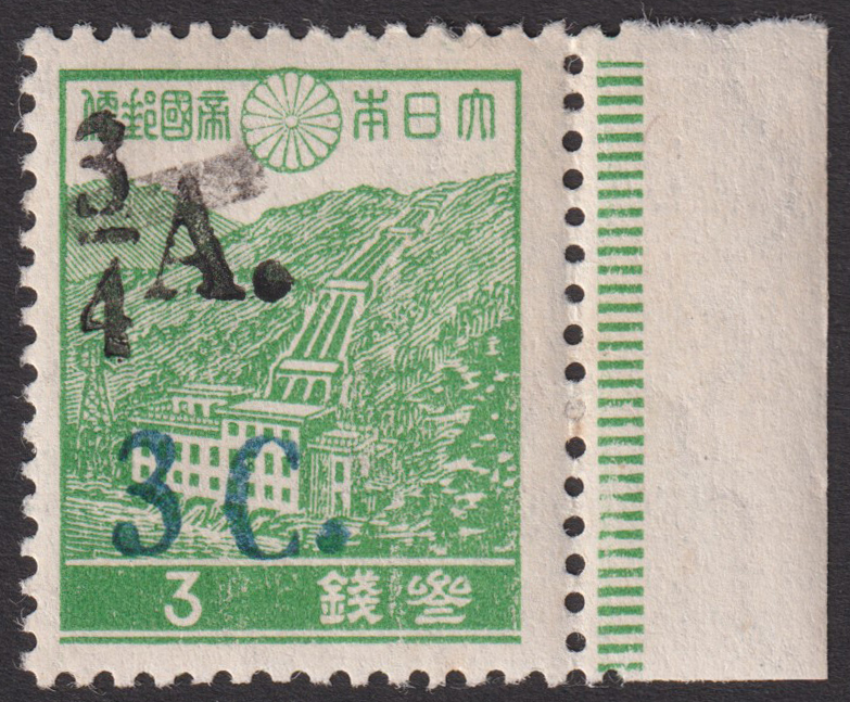 - 南方占領地切手 ビルマ 昭和切手にセント再加刷 青加刷 3c/(3/4A)/3銭 未使用 JPS:2B27a 0628