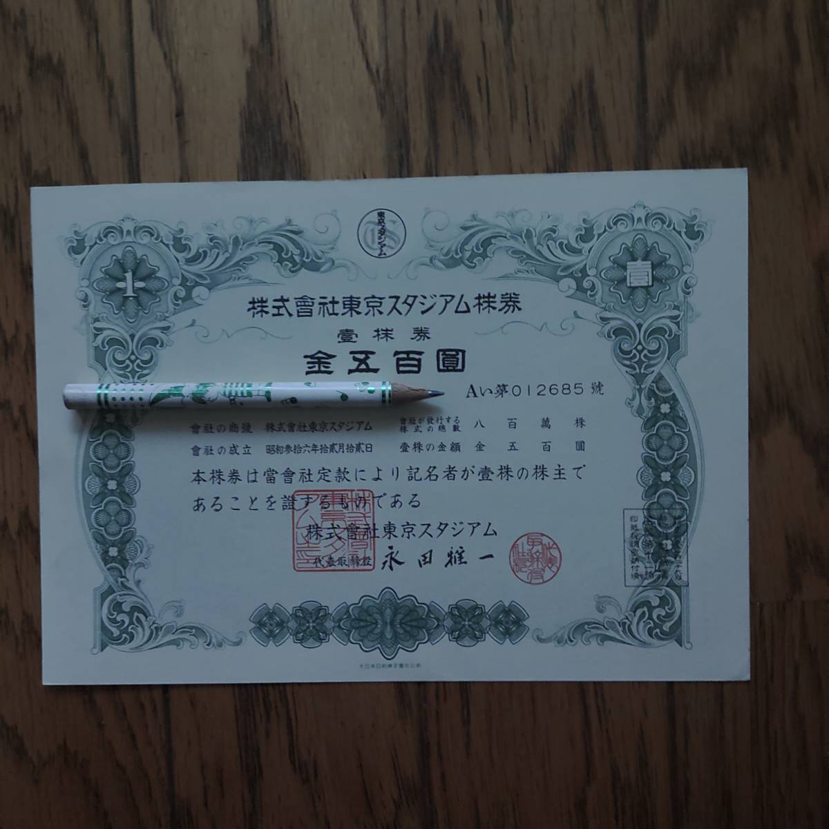 > ★★ 即決 無効株券 株式会社東京スタジアム株券 検)ロッテ マリンスタジアム オリオンズ マリーンズ ★★