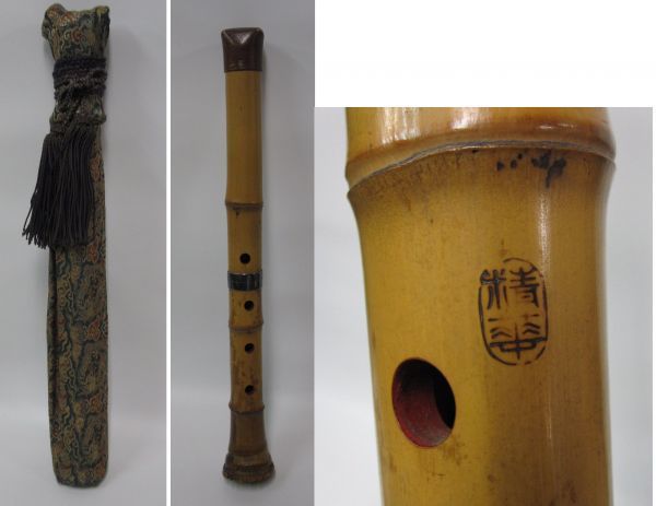 > [悠]・尺八 精華在銘 銀巻中継2つ折 時代和楽器 キャップ付 しゃくはち