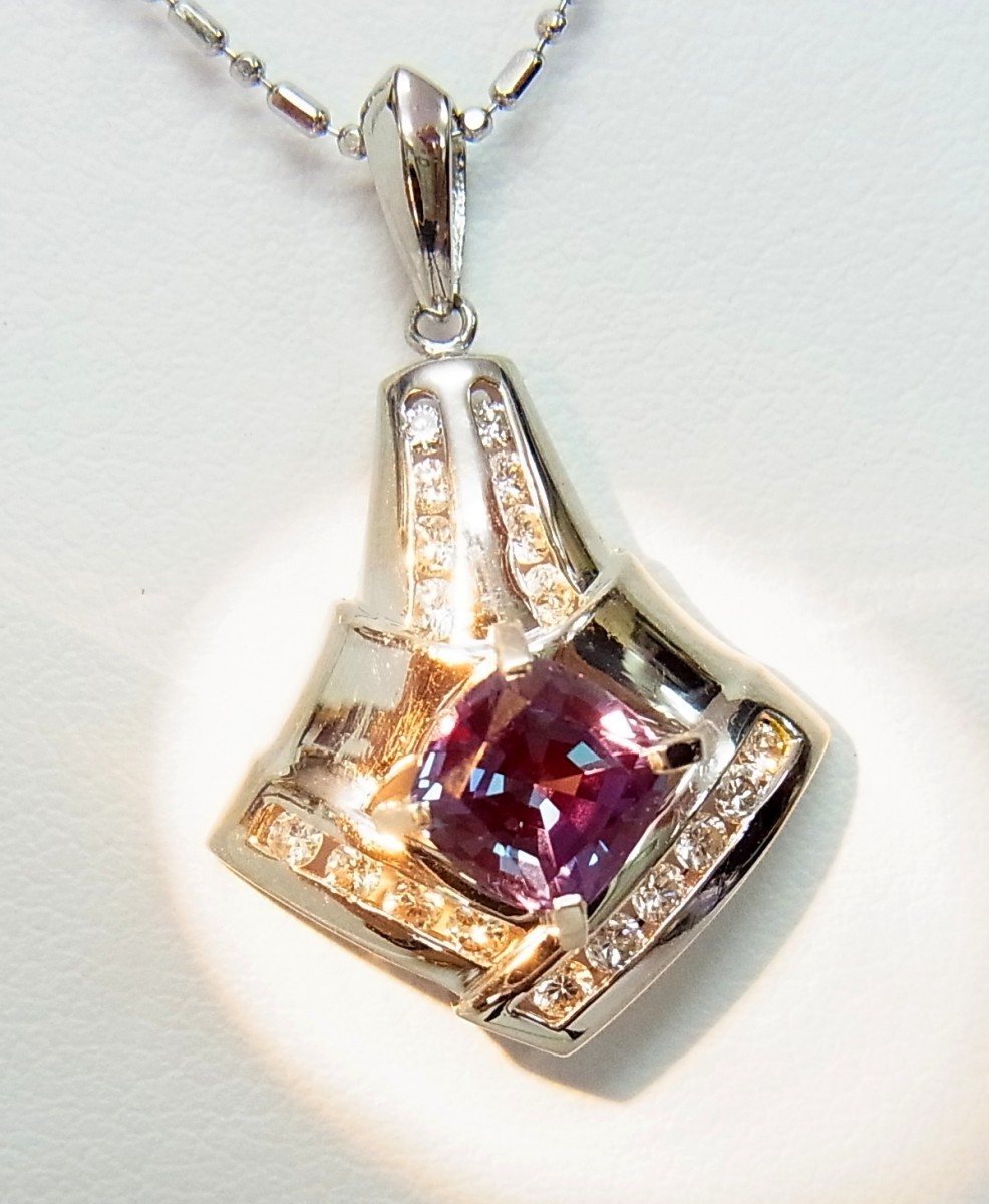 - 天然を超えた宝石/京セラ製イナモリストーン/アレキサンドライト プラチナペンダントネックレス/卸価格/送料無料