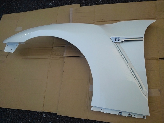 > 日産 純正 R35 GT-R フロントフェンダー パールホワイト 左側 エンブレム ダクト 付き 19モデル外し NISSAN GTR