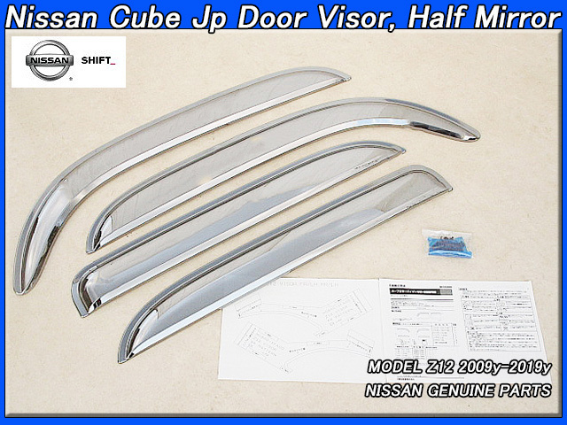 - キューブZ12【NISSAN】ニッサンCUBE純正JPドアバイザー前後左右4点ハーフミラー光輝タイプ/USDM国内仕様JDMアクリル製ディーラーオプション