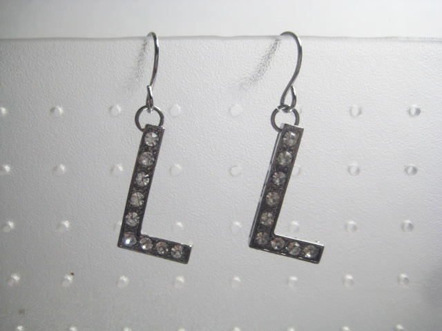 - キラキラ☆ラインストーン付きイニシャルピアス☆L