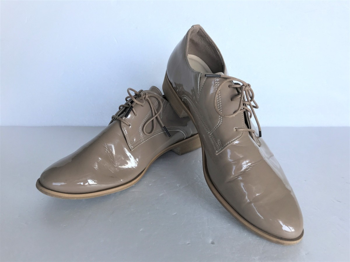 > ■【YS-1】 ヴェリココ ■ レースアップ エナメル シューズ パンプス ■ ライトブラウン系 24.5cm ヒール高2.5cm 【東京発 手渡し可能】D