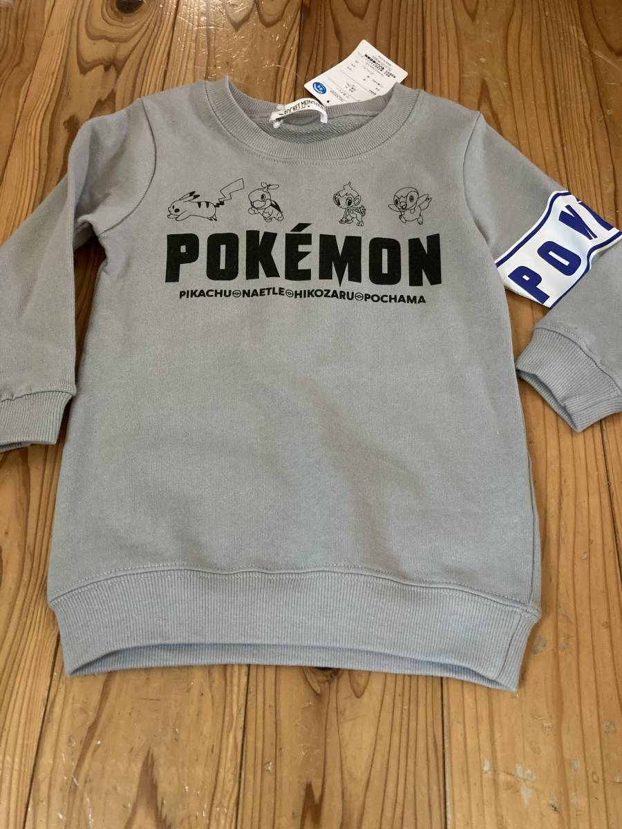 - 新品 即決 送料無料♪ポケモンロゴトレーナー90サイズ ピカチュウ ナイトル ヒコザル ポッチャマ 中灰 丈長め 綿100%