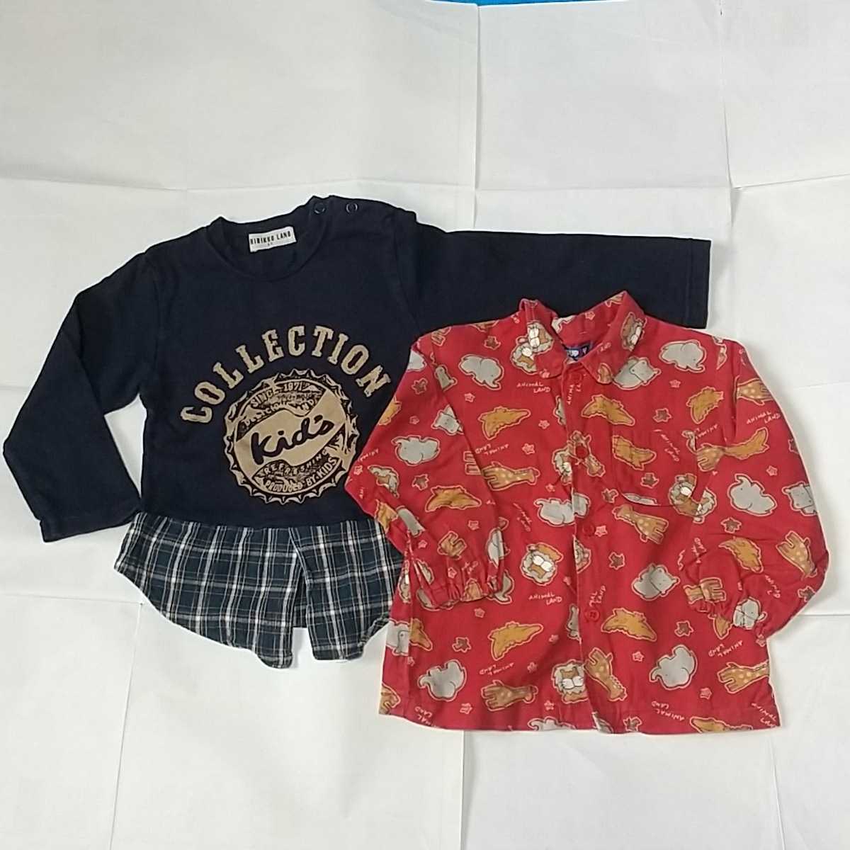 - 90cm 95cm 使用少なめ 長袖Tシャツ+長袖シャツ 2枚セット