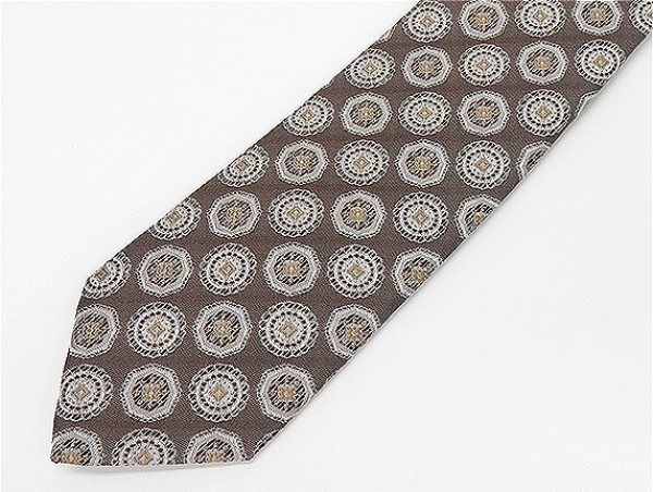 - 京丹後産生地 日本縫製 ネクタイ 茶×銀鼠 メダリオン柄 シルク100% 小ロット生産品 URN08