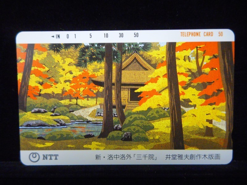 - テレカ 50度 新・洛中洛外 三千院 井堂雅夫 創作木版画 イラスト 未使用 T-2410