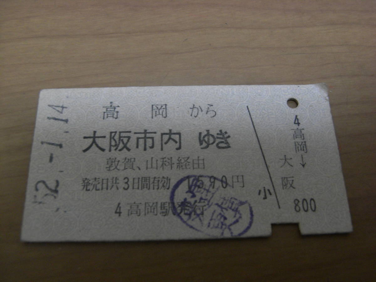 - 北陸本線 高岡から大阪市内ゆき 敦賀、山科経由 昭和52年1月14日 高岡駅発行 国鉄
