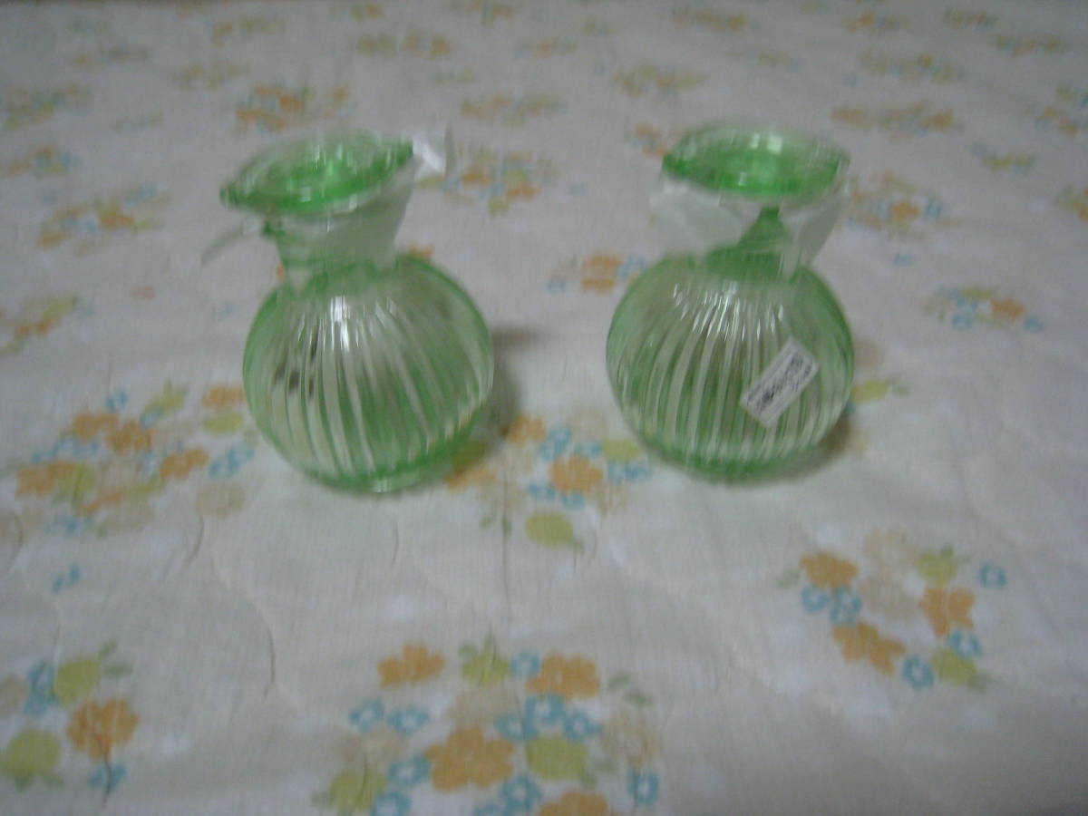 - ☆調味料入れ(ガラス製・グリーン)2点☆中古未使用