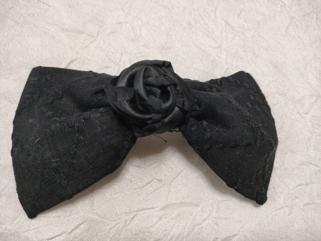 - 未使用経年品 輸入生地と黒巻きバラのコラボ髪飾り