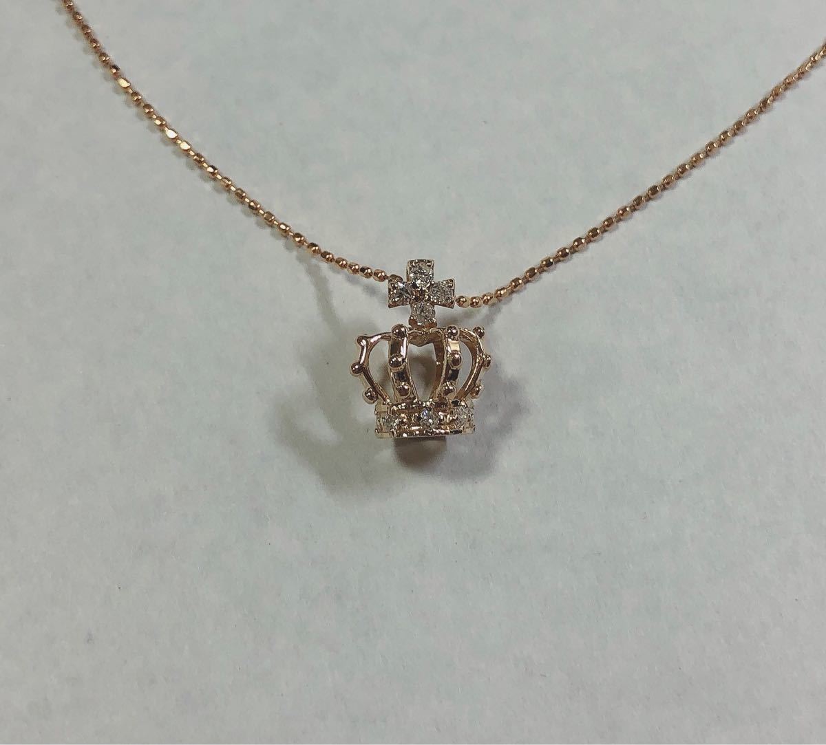 - 【質屋 尾張屋商店 東京】 ☆仕上済☆ K18PG ピンクゴールド ダイヤモンドレディースネックレス 王冠 クラウン