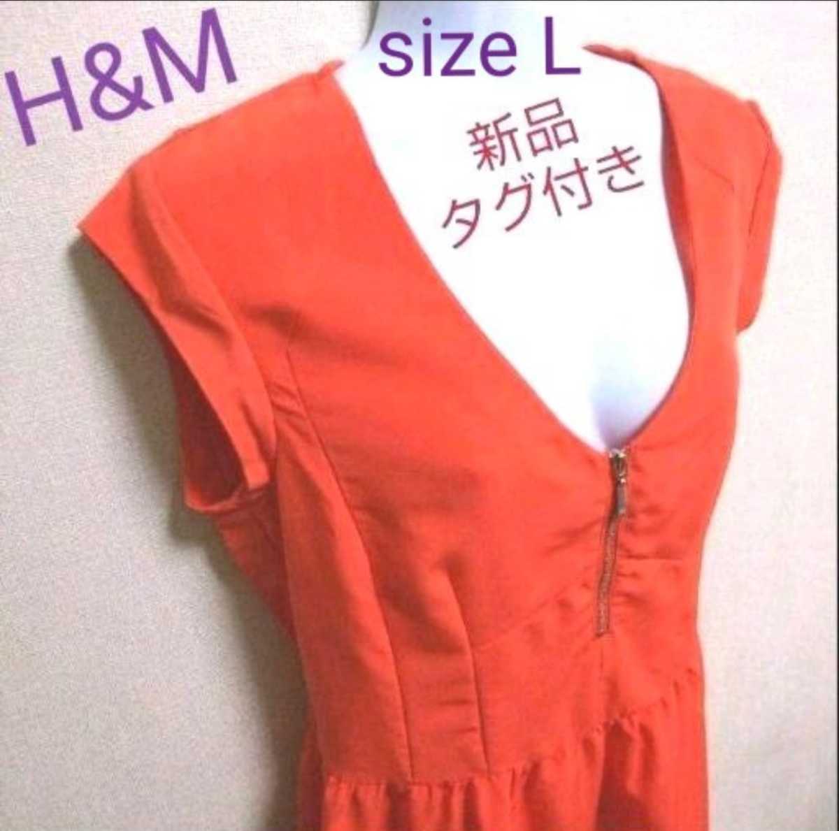 - H&M Aライン ワンピース オレンジ系色【新品・タグ付き】