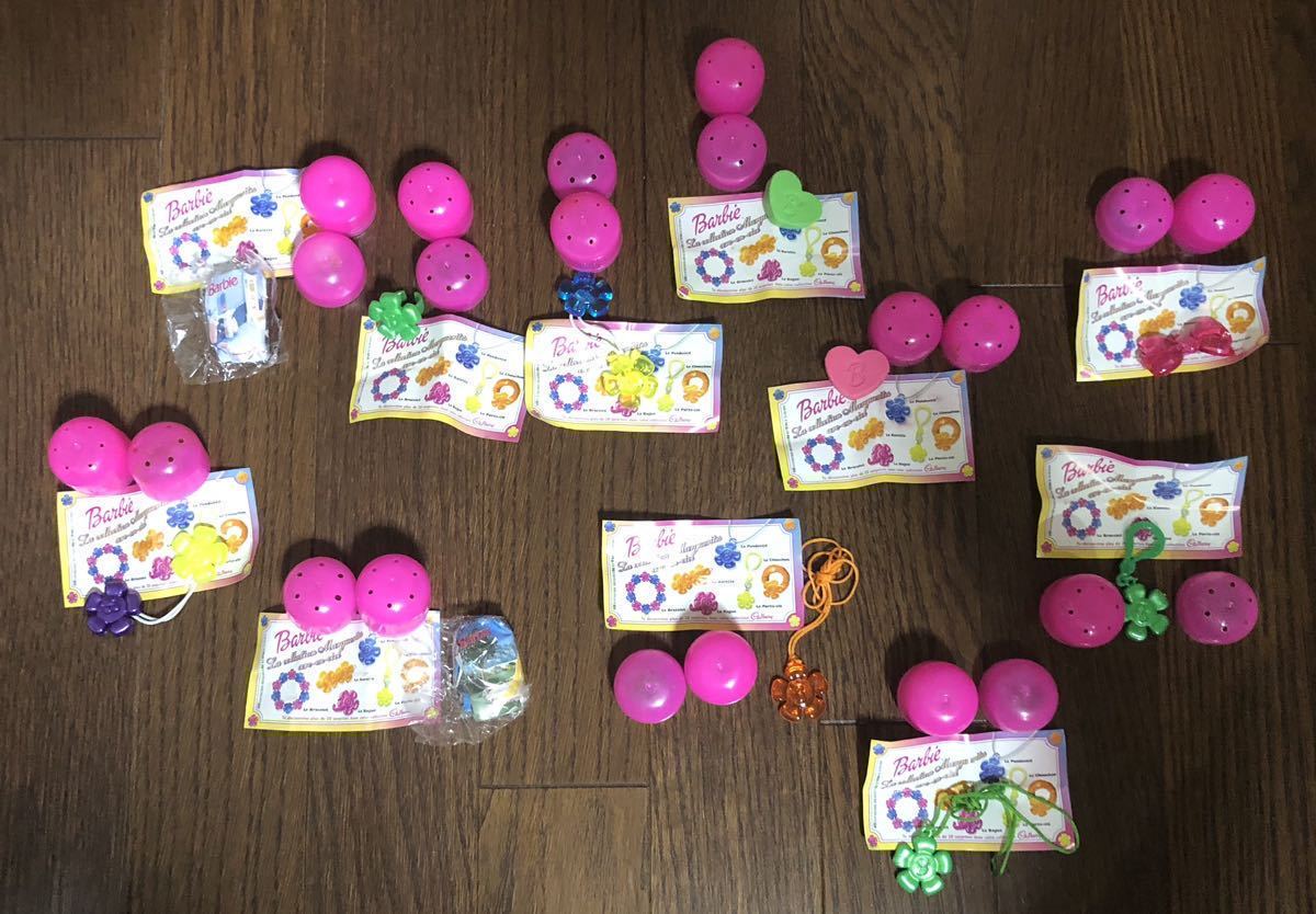 - レア海外1998当時物Barbieチョコエッグ玩具11個セットで撮影の為開封 おまけコレクション ミニパズル ヘアゴム アクセサリーなどガチャ食玩