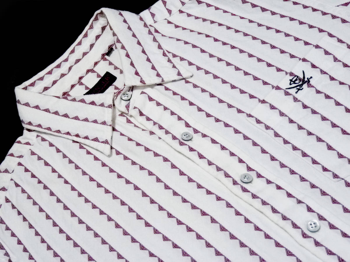 > RJB フラットヘッド 長袖 トライアングル ストライプ ジャガード シャツ 白 36
