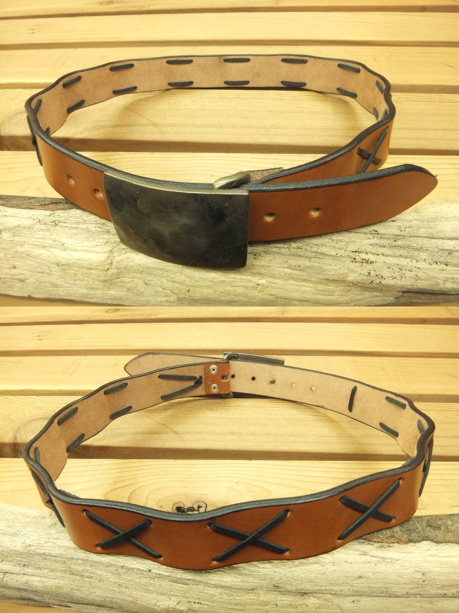 - 当店オリジナル製作ベルト [茶ベルト]×[黒革ヒモ]新品[L=90㎝][バックル2種付き]が送料無料で!! (※レッドムーン風!!)