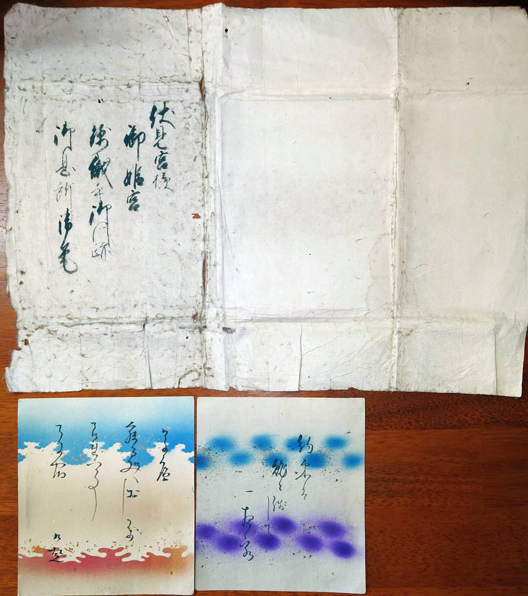 - f22062801〇伏見宮様御姫宮御息所清毫 和歌色紙2枚〇和本古書古文書