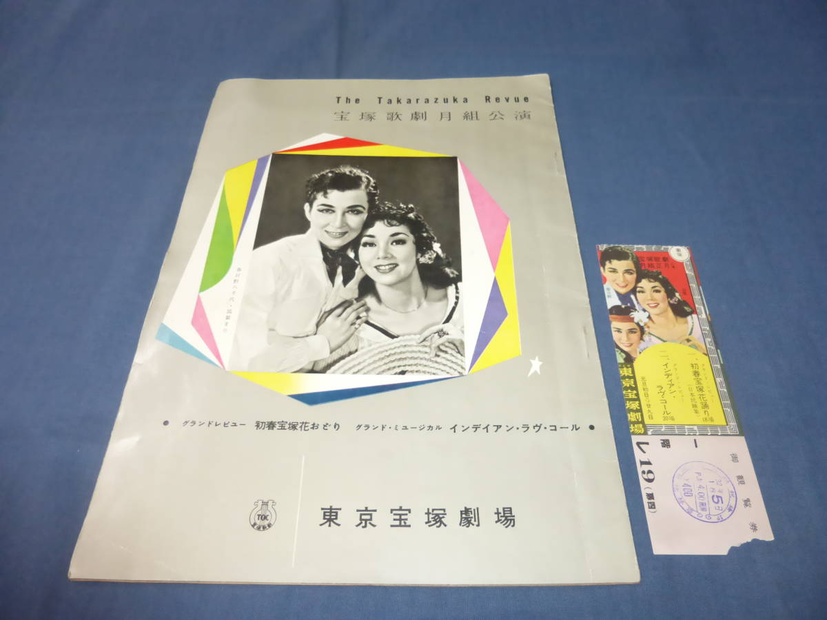 > (41)古い宝塚・月組公演パンフ+チケット半券「初春宝塚花踊り/インディアンラブコール」1957年/春日野八千代/筑紫まり/故里明美/雅章子