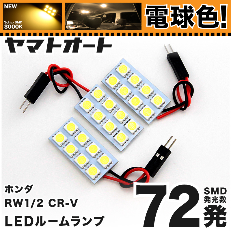 - ★電球色72発★ RW1/2 CR-Vハイブリッド LED ルームランプ 3点セット [H30.8~] 【電球色/3000K】 パーツ ライト 室内灯 TOYOTA GRANDE