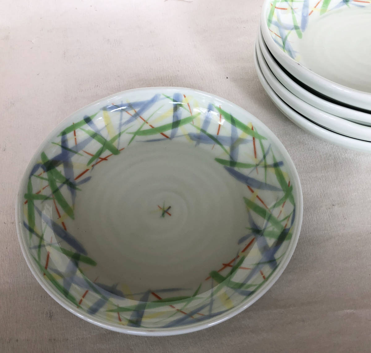- 中皿 丸皿 色絵芦7号皿 5枚組 有田焼 聖山窯 プレート