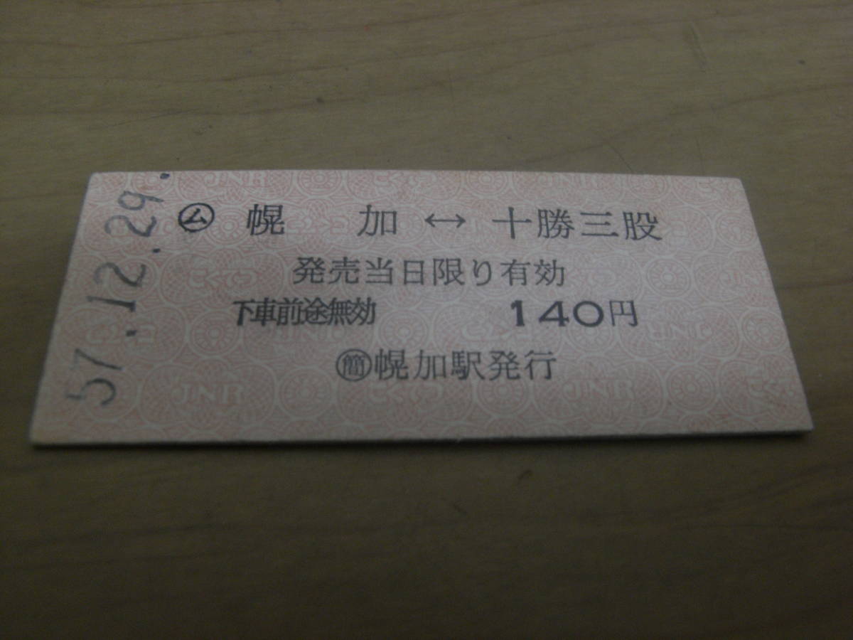 - 士幌線 ム幌加-十勝三股 140円 昭和57年12月29日 簡 幌加駅発行