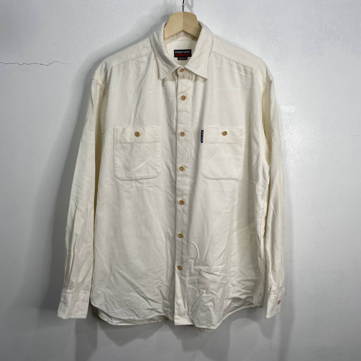 > ☆送料無料☆PEARLY GATES☆パーリーゲイツ☆コーデュロイ長袖シャツ☆Mサイズ☆白☆DAYNAP☆ゴルフ☆G22
