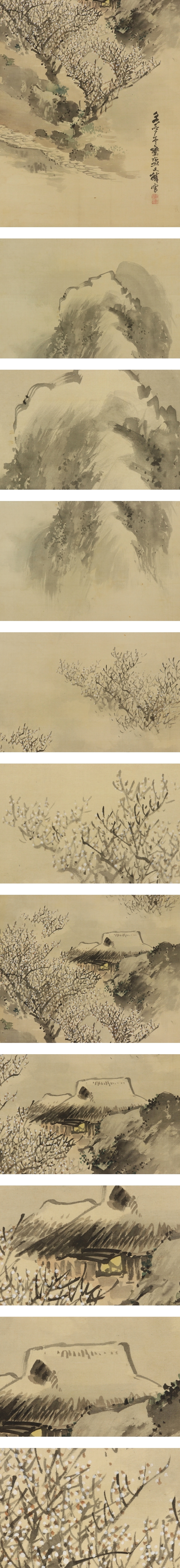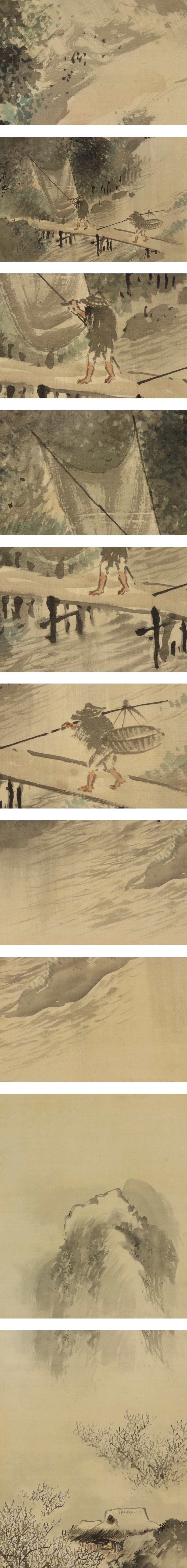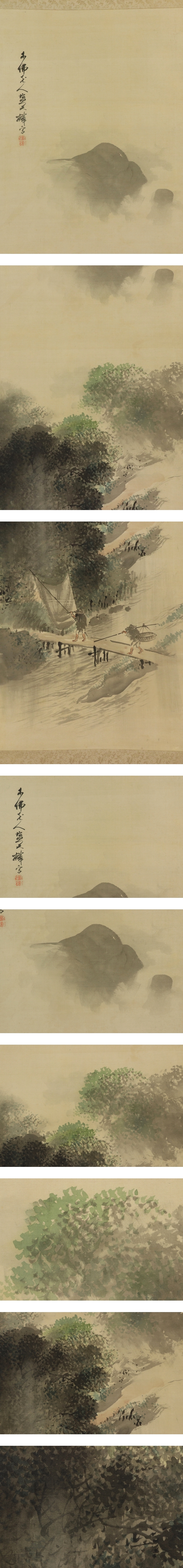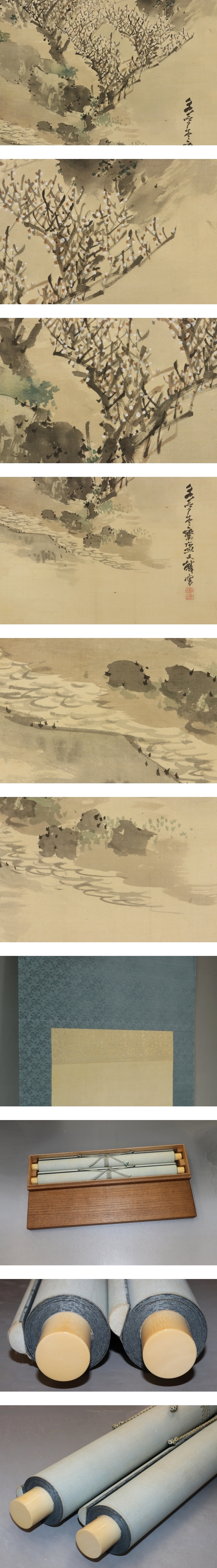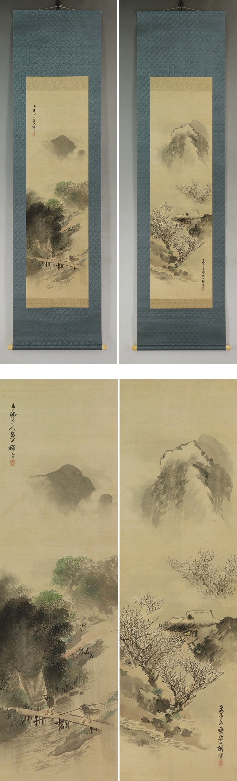 - 名品【真作】塩川文麟【双幅・春夏山水】◆絹本◆合箱◆掛軸 u03198