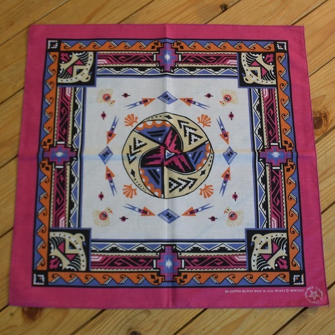 - 送料無料 Vintage ネイティブ柄 バンダナ Made in USA アメカジ サンダーバード ピンク ハンカチ アメリカ仕入れ 雑貨 ヴィンテージ A0424