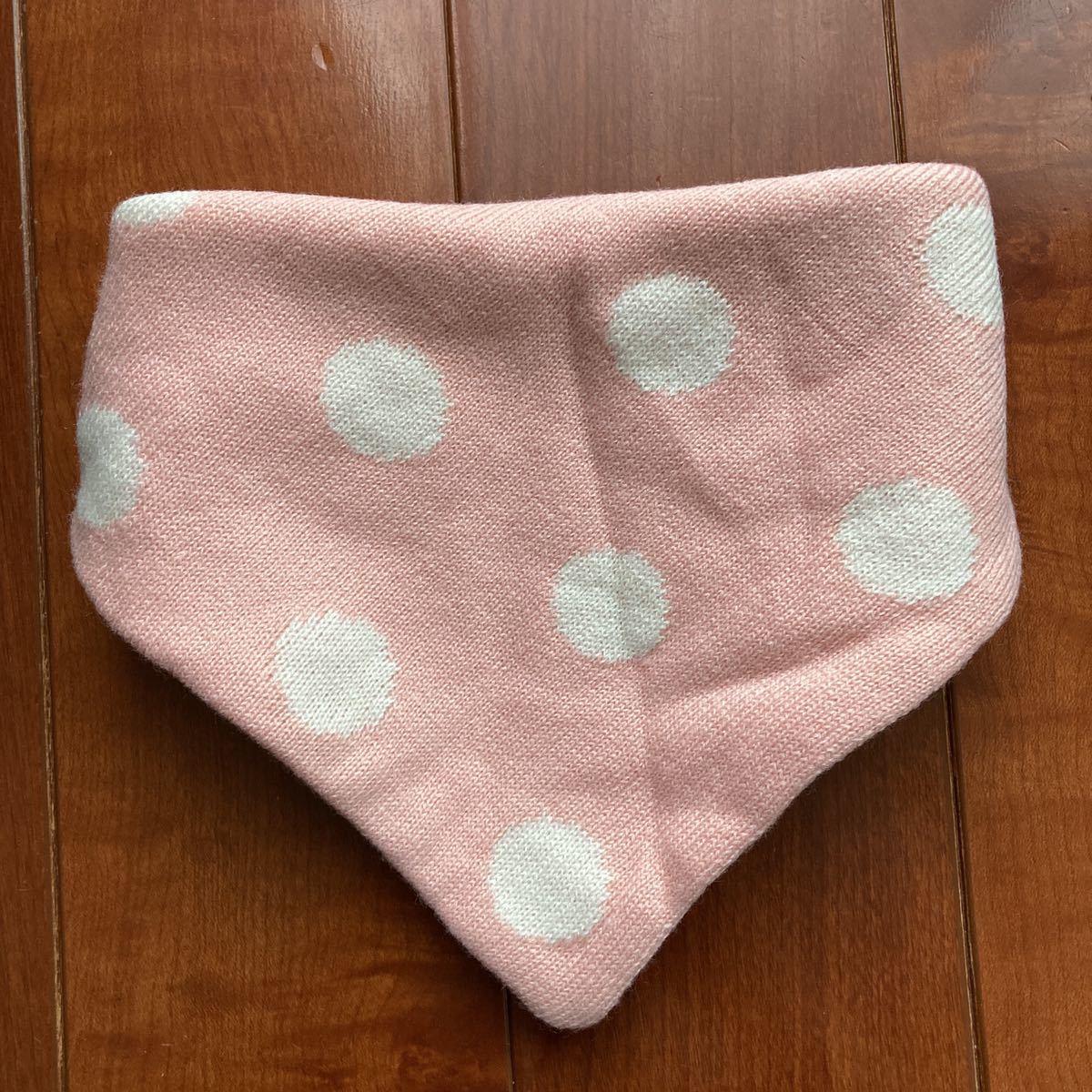 - おしゃれ・ナチュラル系・リバーシブル・ニット×パイル・スタイ・バンダナ・よだれ掛け・ピンク×ベージュ/寒いときにも