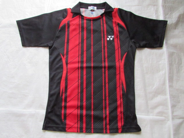 - メンズ Sサイズ yonex エリ付き 半袖 Tシャツ USED きれい ゲームシャツ ブラック/レッド系 ヨネックス