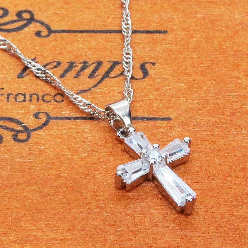 - クリアガラスのコンパクトなロザリオチャームのネックレス スクリューチェーン アジャスター追加可